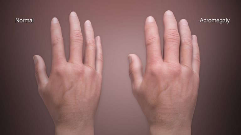 Η ακρομεγαλία είναι μια σπάνια και σοβαρή ενδοκρινική πάθηση που προκαλείται από την υπερβολική παραγωγή αυξητικής ορμόνης (GH) από την υπόφυση. Συνήθως, αυτή η υπερπαραγωγή οφείλεται σε καλοήθη αδένωμα της υπόφυσης, το οποίο παράγει αυξητική ορμόνη σε υπερβολικές ποσότητες. Η κατάσταση αυτή εξελίσσεται αργά, με τα συμπτώματα να εμφανίζονται σταδιακά και να γίνονται πιο εμφανή με την πάροδο του χρόνου. Η διάγνωση κατά μέσο όρο γίνεται 8-10 χρόνια μετά την έναρξη της νόσου.